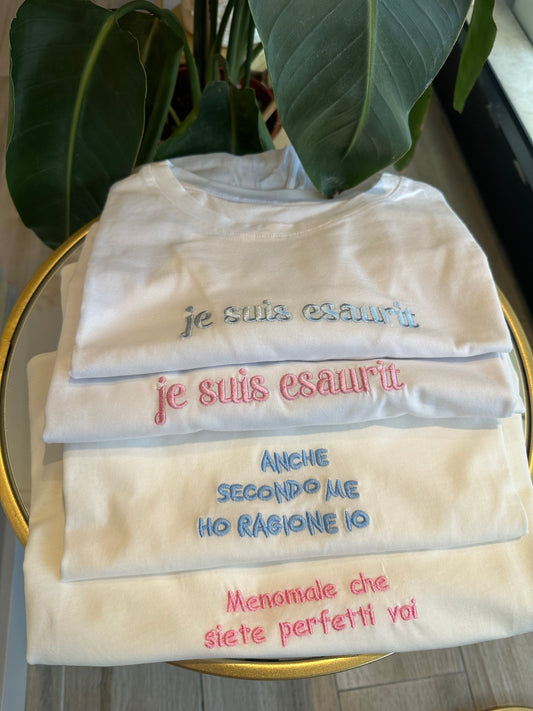 T-Shirt bianca con Scritta Ricamata