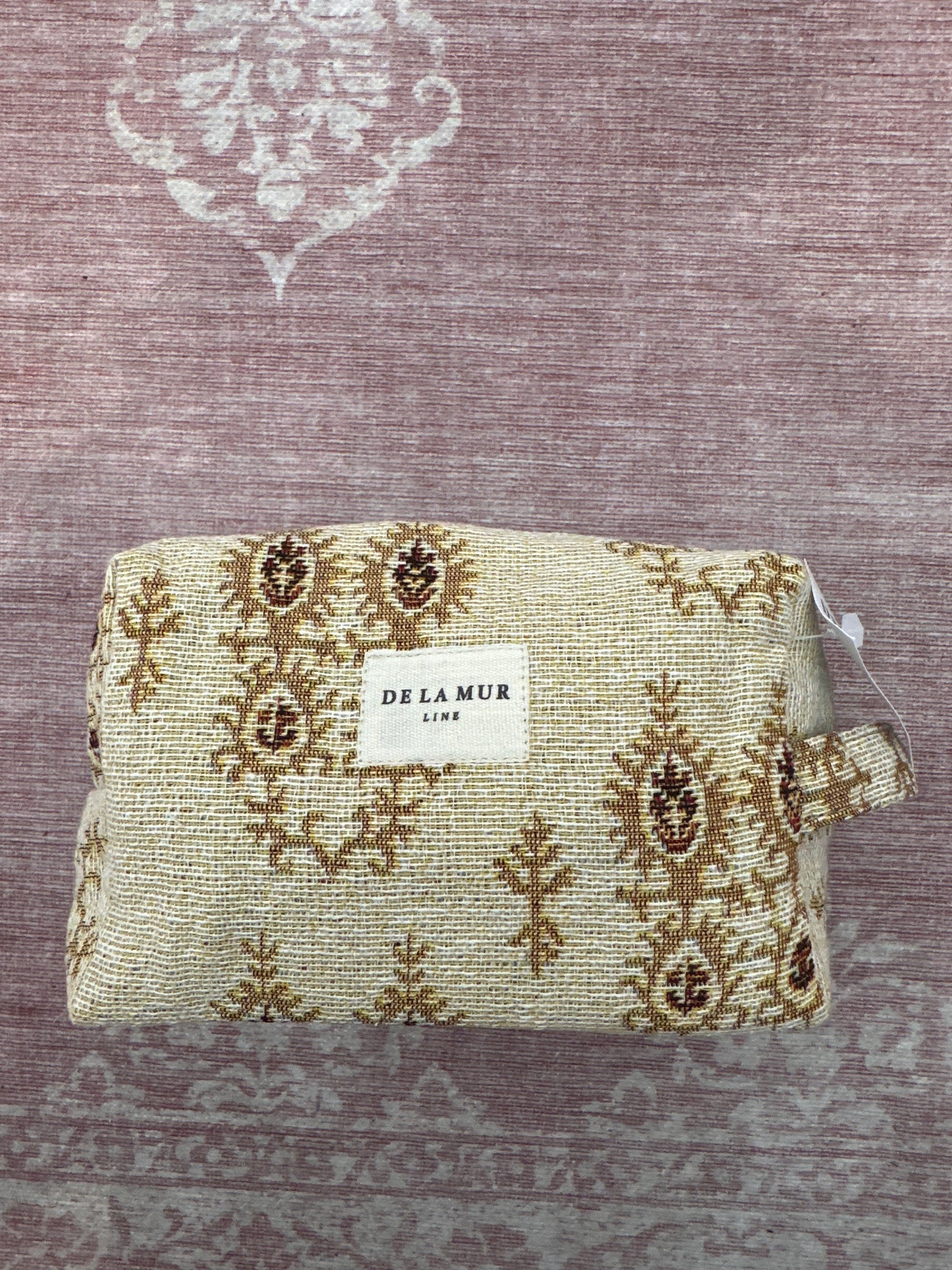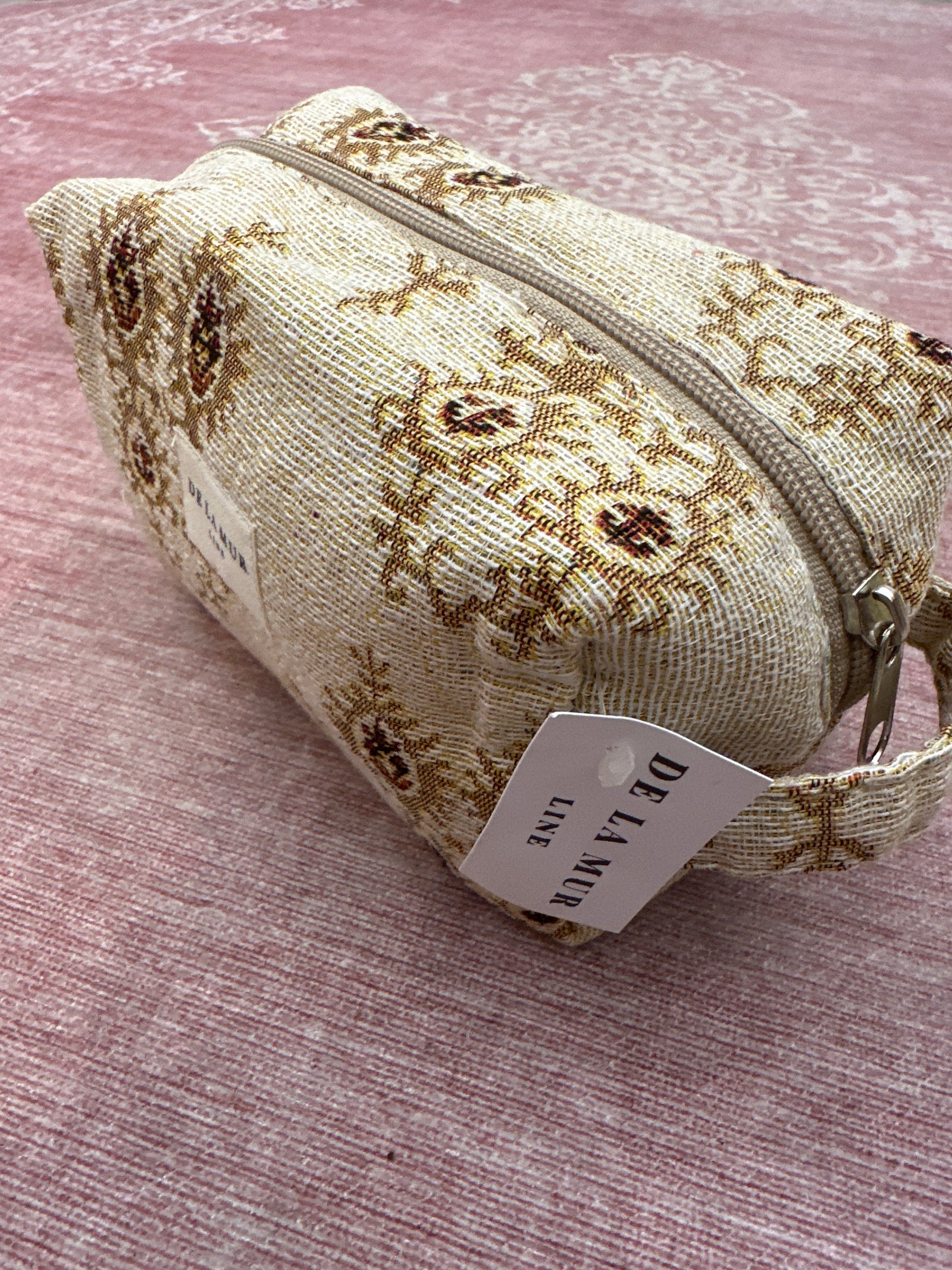 Beauty case medio con cerniera nella parte superiore e con manico laterale.