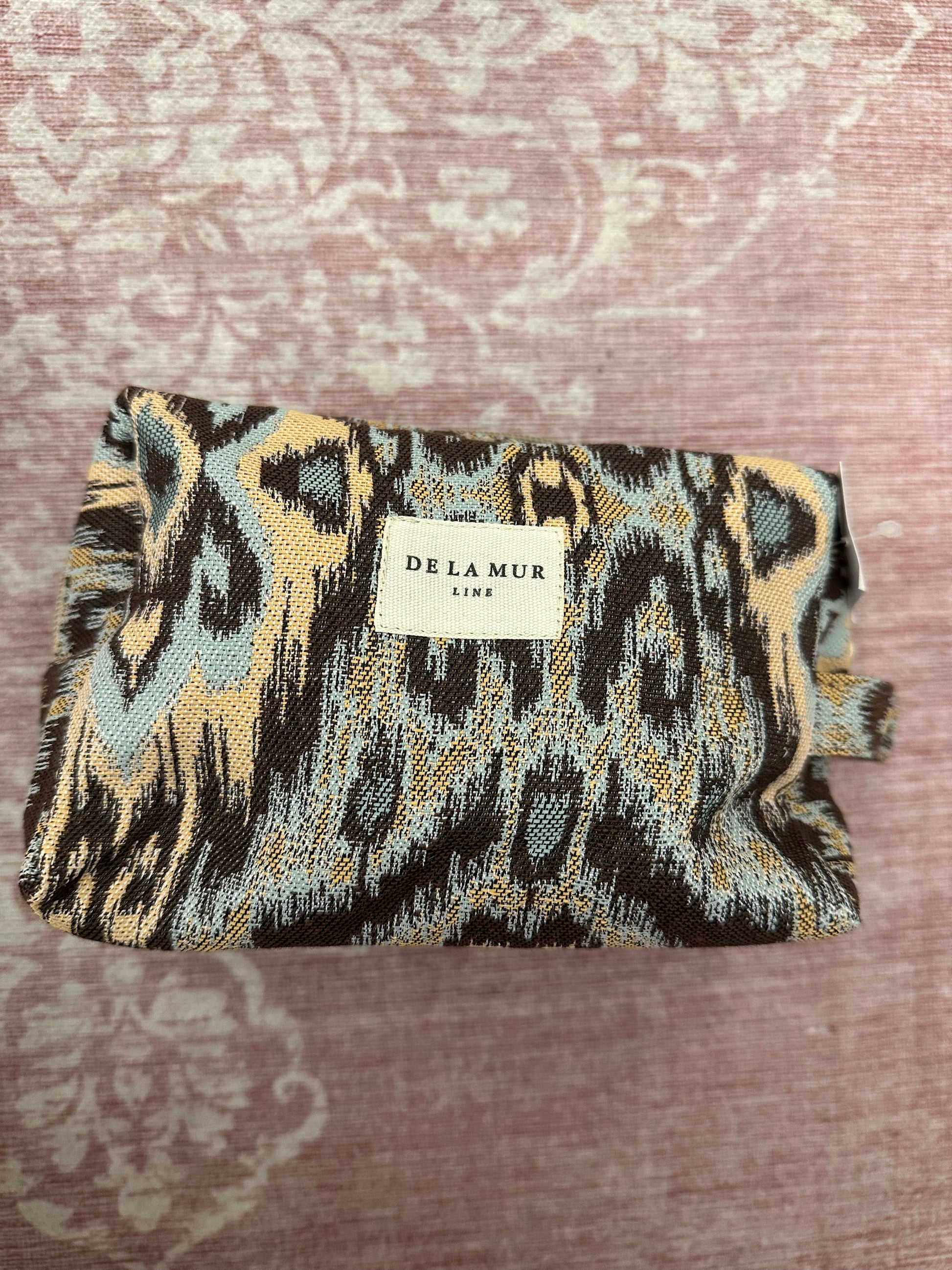 In tessuto spesso di jacquard con stampa geometrica in tonalità marroni e blu.