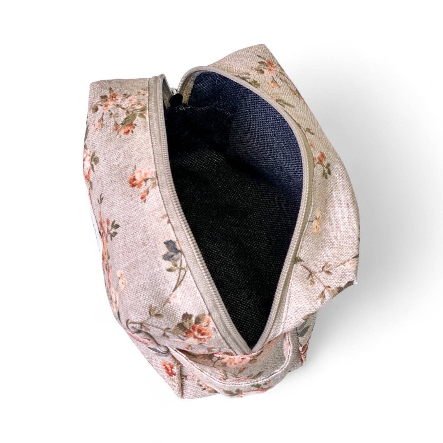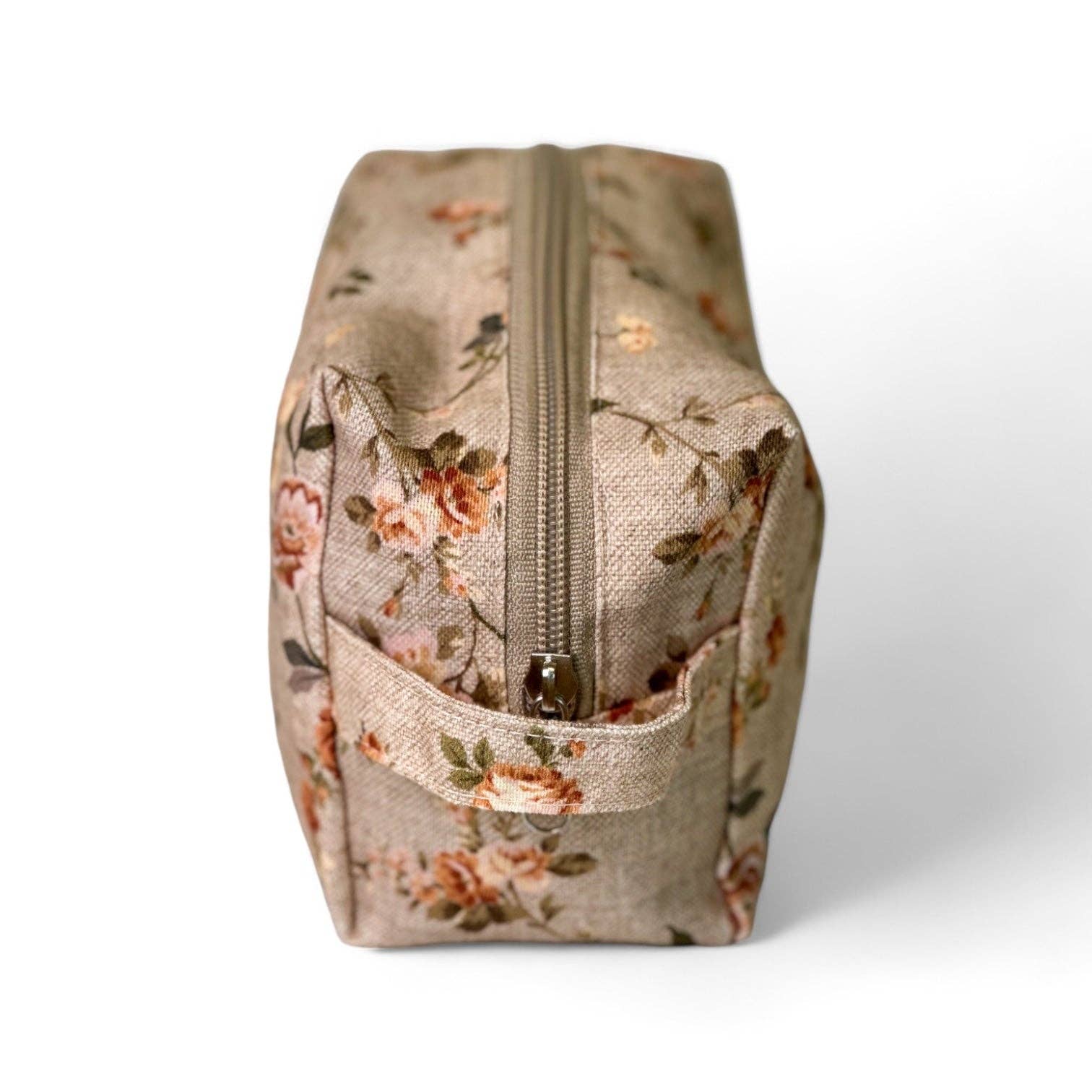 Beauty case medio con cerniera nella parte superiore e con manico laterale.