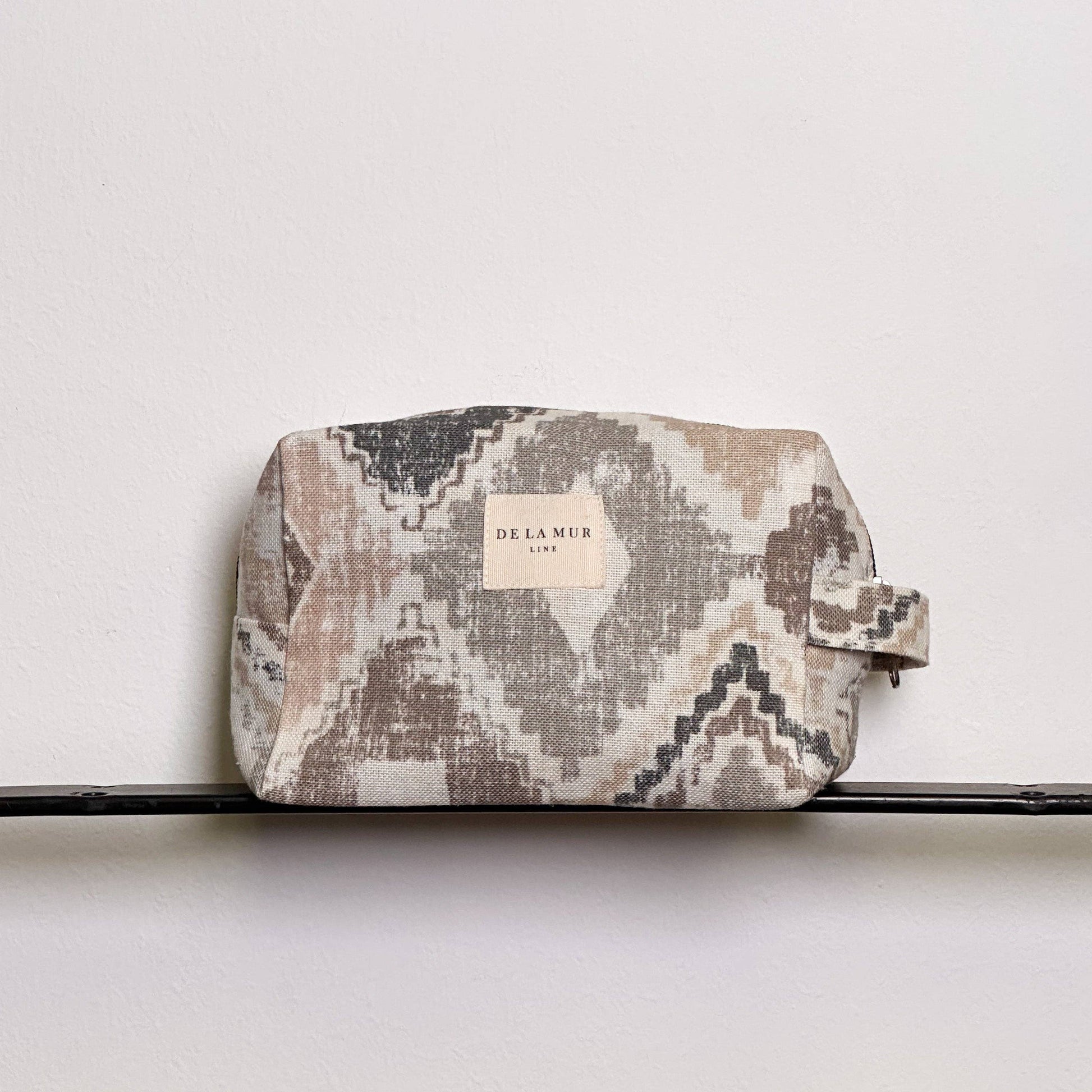 Beauty case medio con cerniera nella parte superiore e con manico laterale.