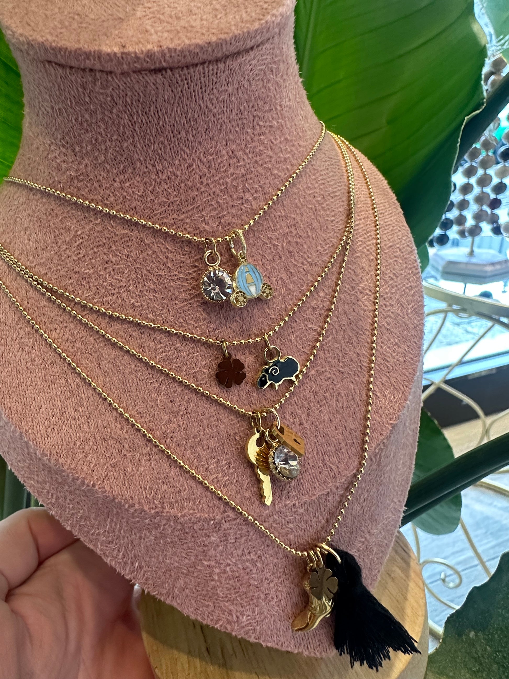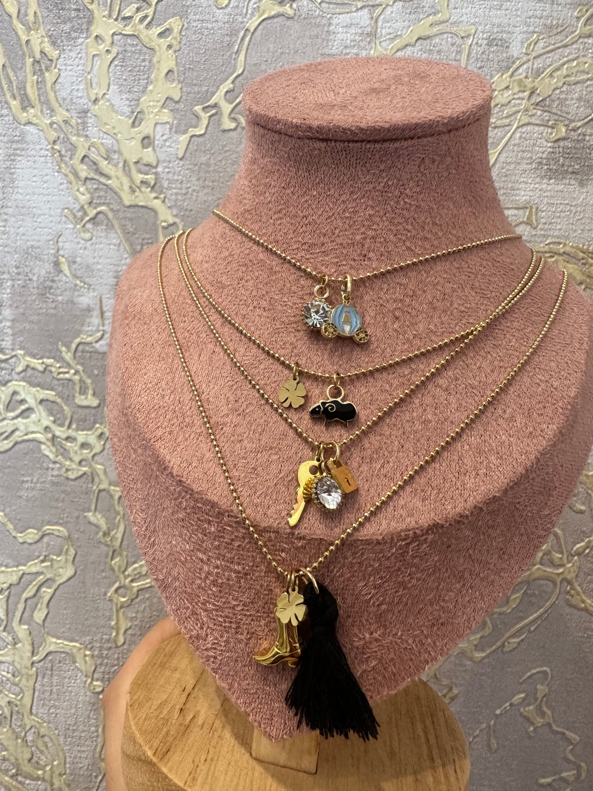 Catenina micro palline base oro, regolabile. Con ciondoli.