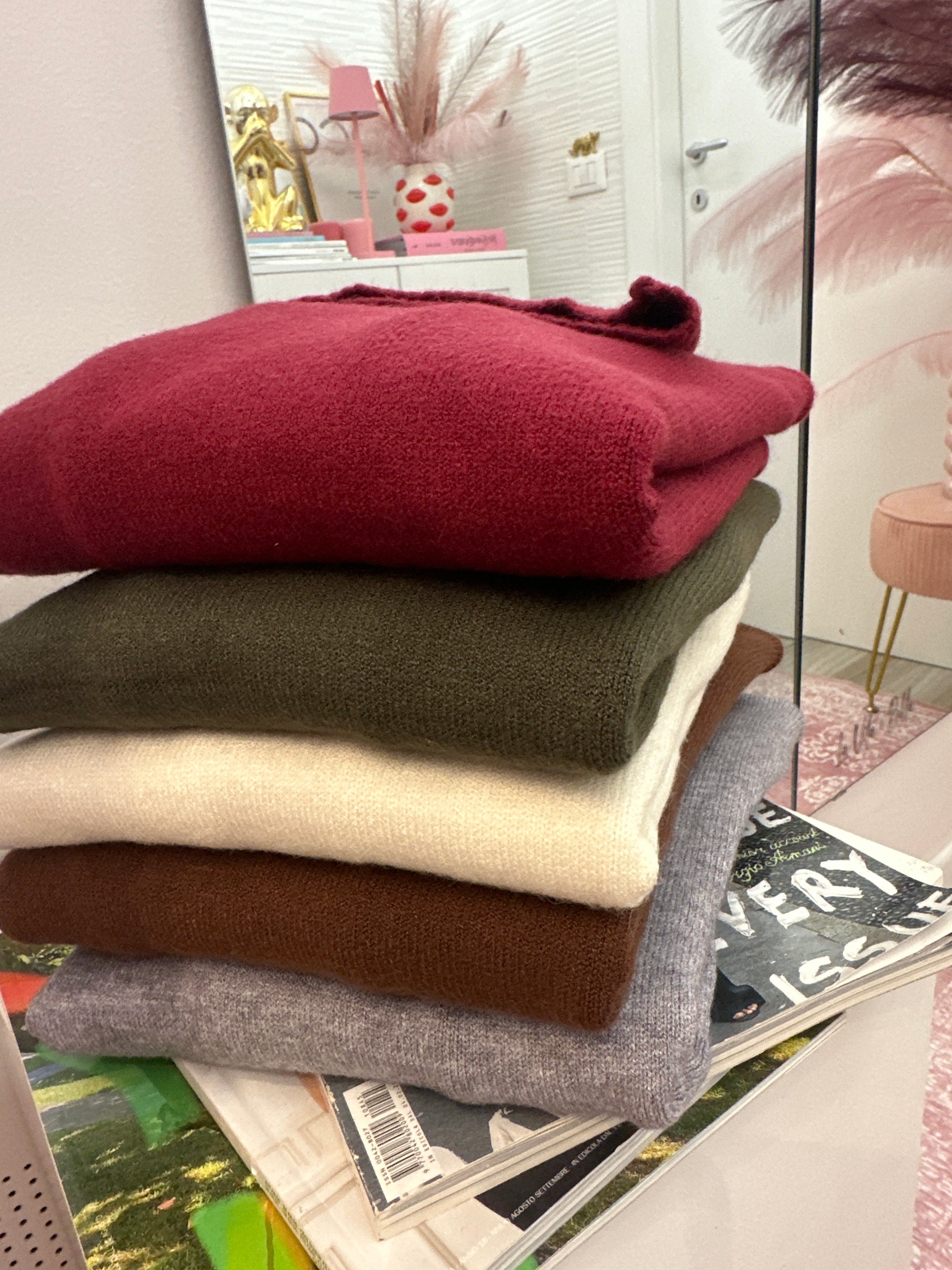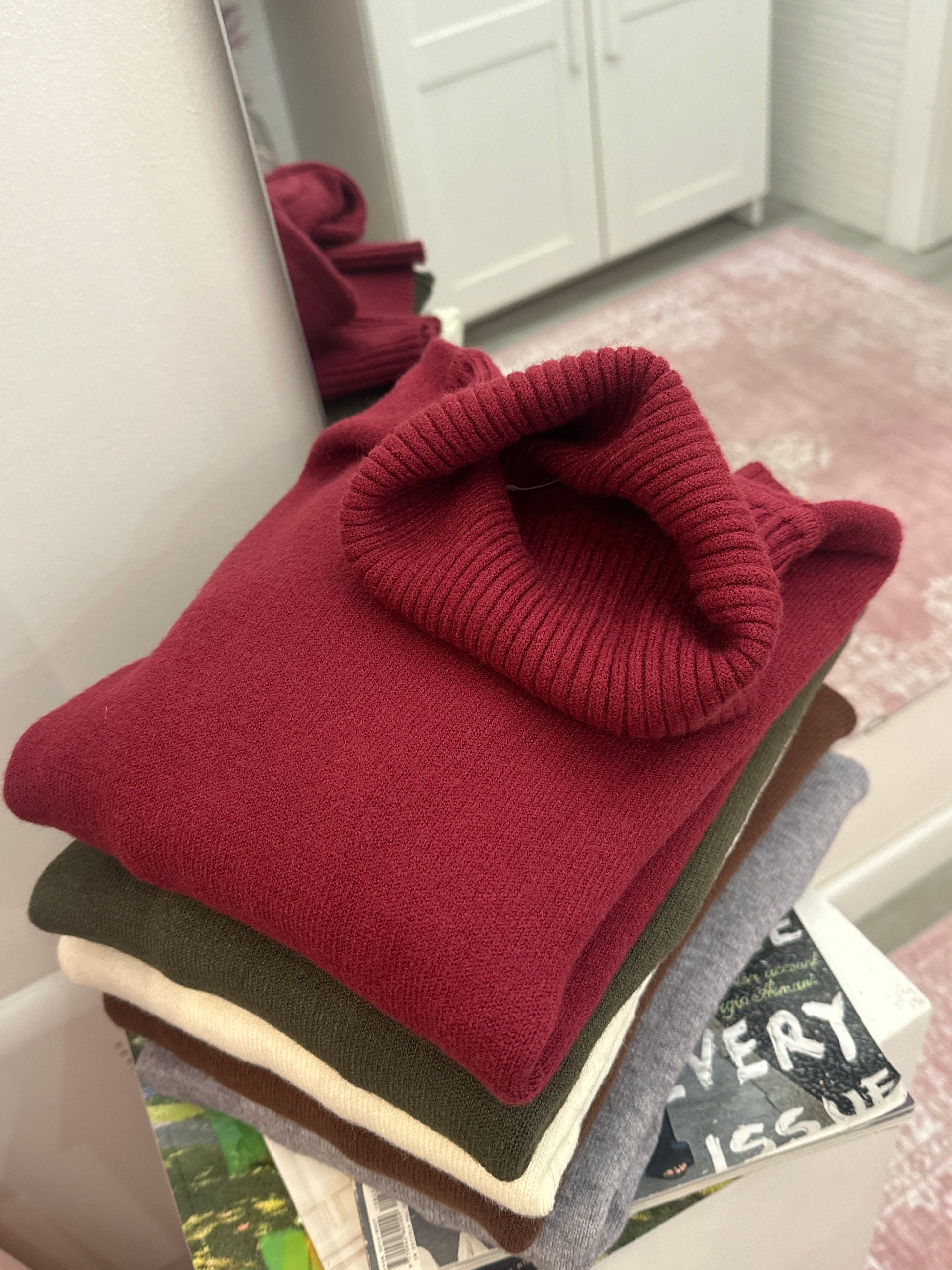 Dolcevita con 88% viscosa e 12% nylon. Morbido e caldo. Vestibilitá asciutta. Con costina su collo,polsini e sul fondo.
