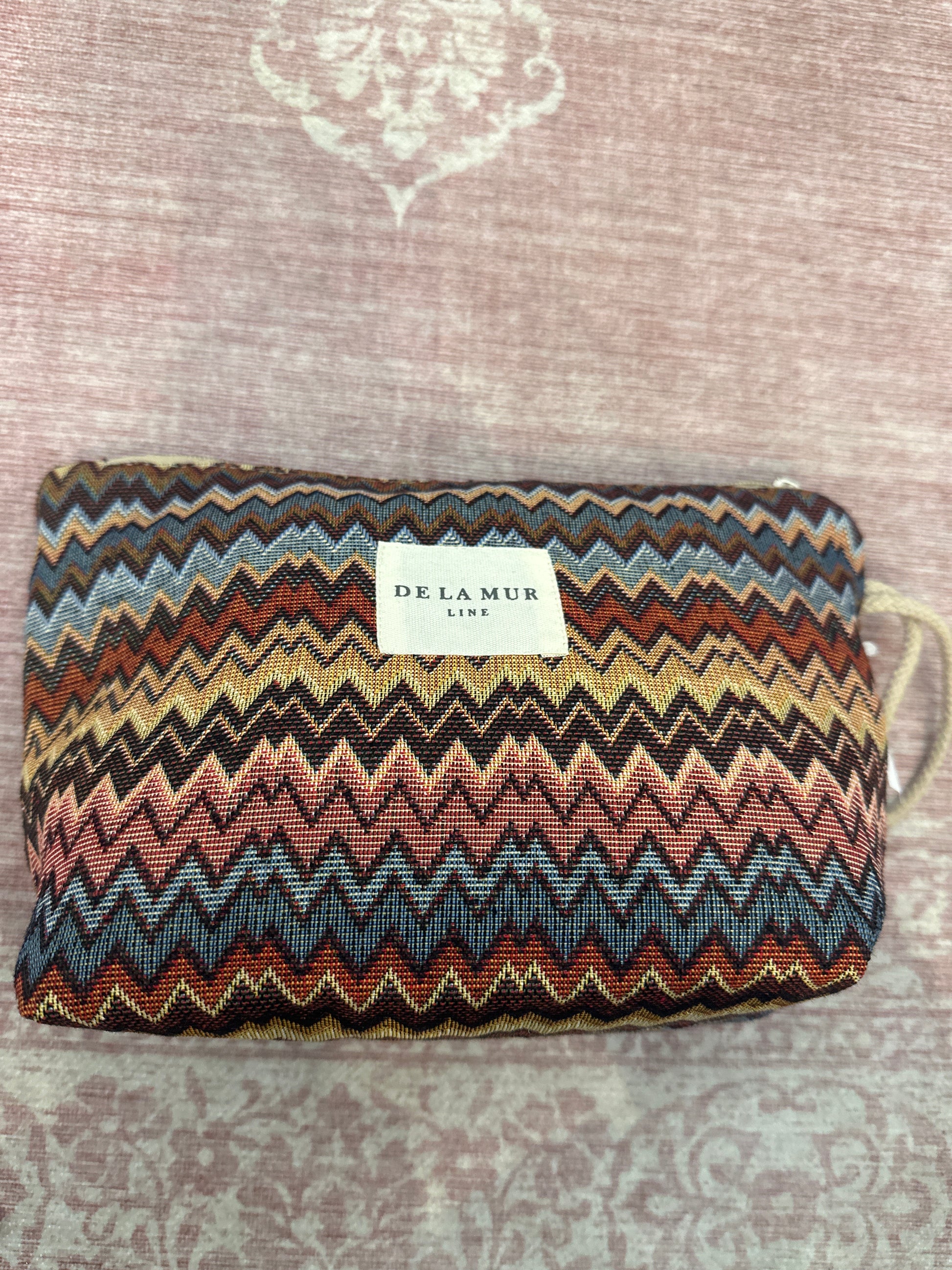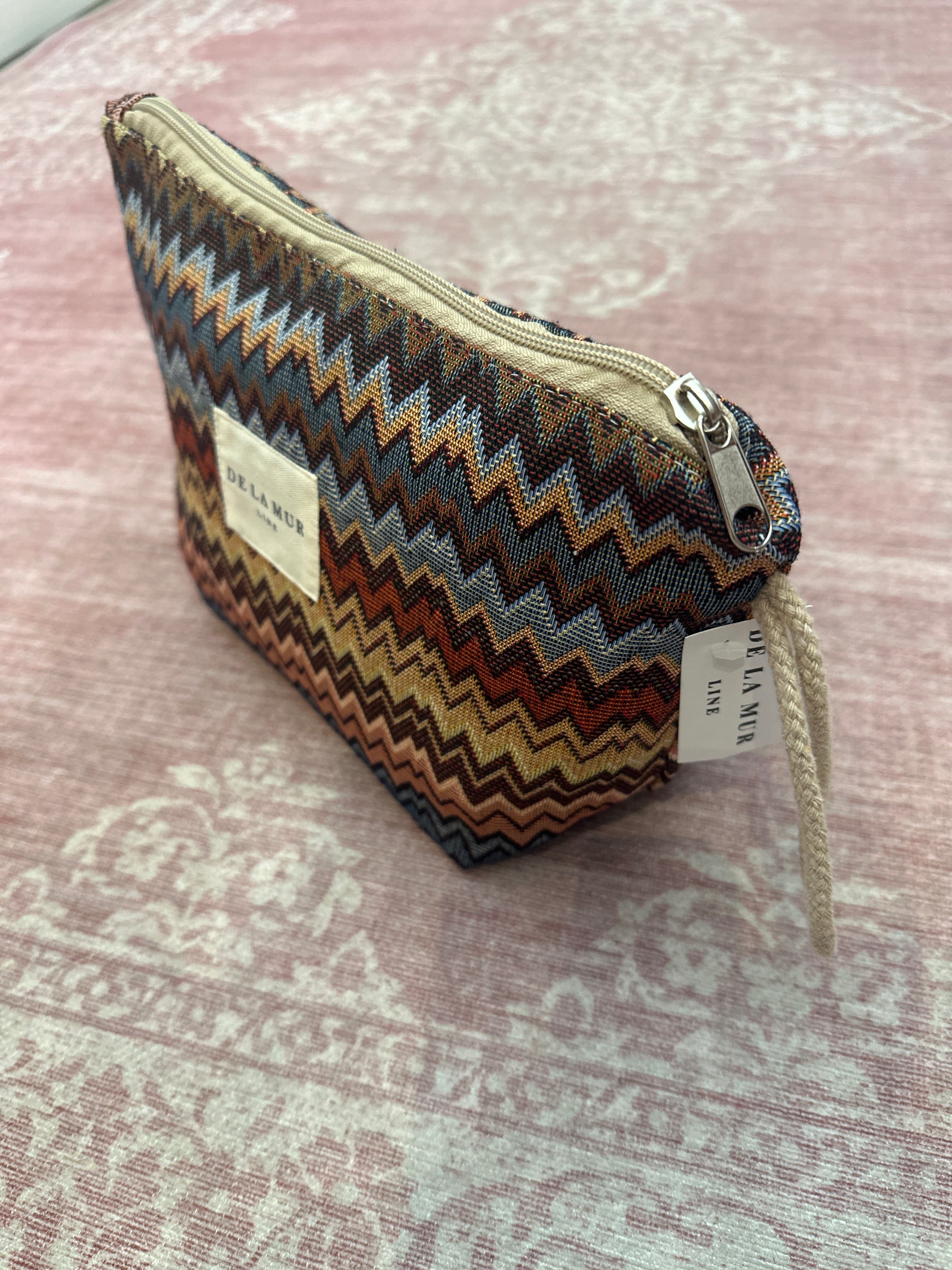Beauty case con chiusura a zip e manico laterale in cordoncino beige. Realizzato in spesso tessuto jacquard con stampa . Foderato internamente in spesso tessuto grigio. Per una corretta manutenzione, lavare a mano in acqua fredda e non asciugare in asciugatrice.