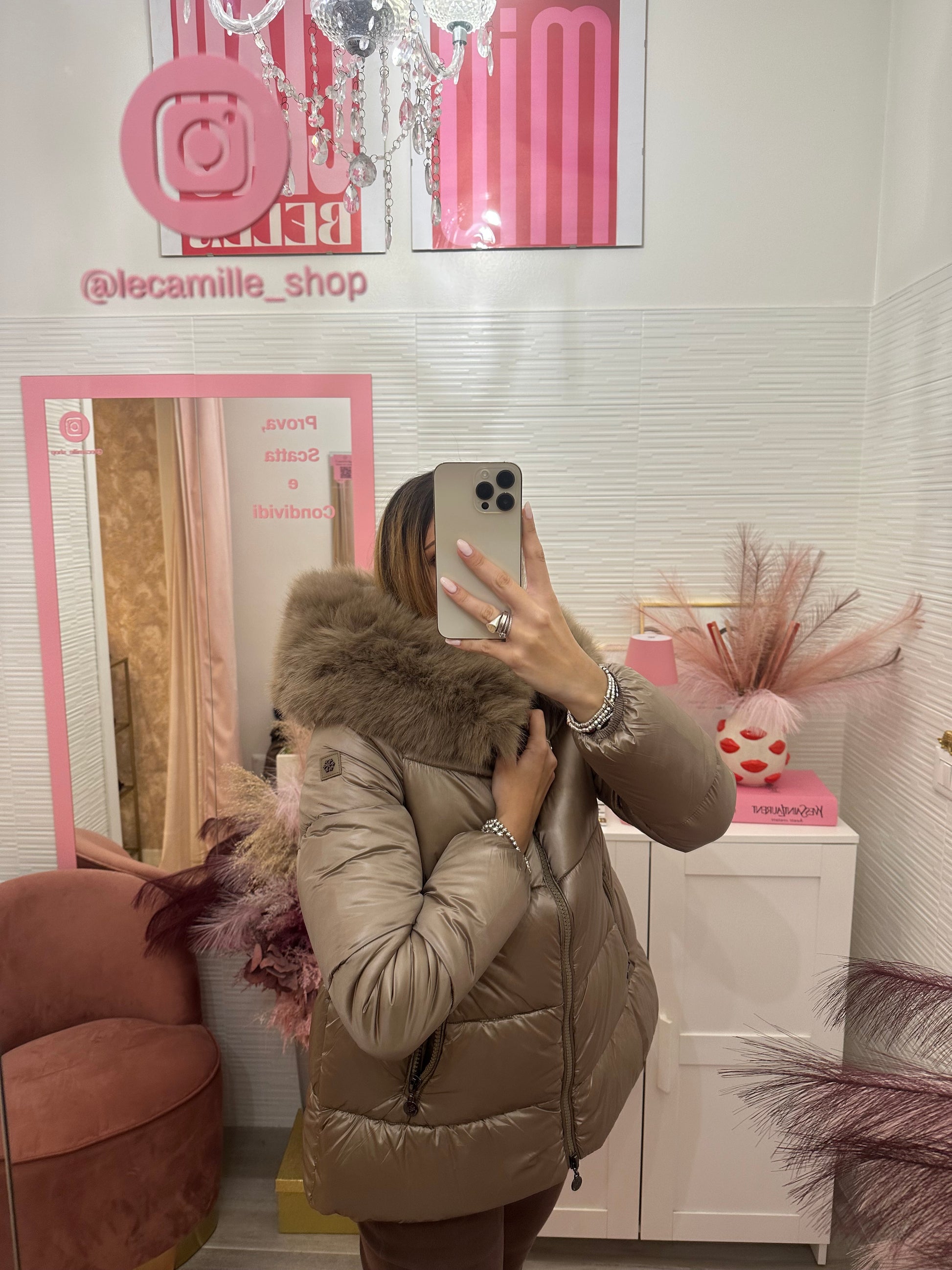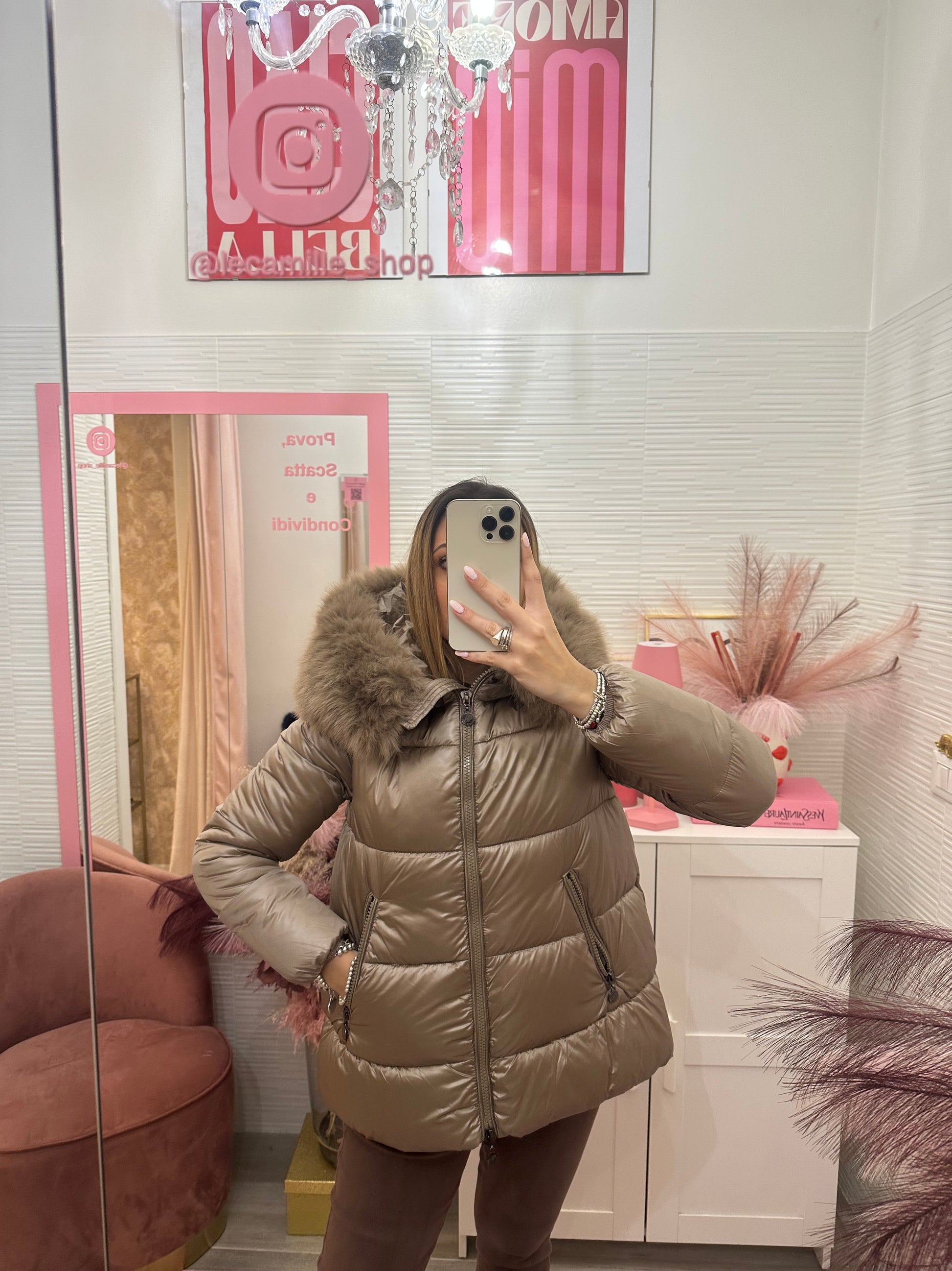 Piumino con cappuccio Taupe
