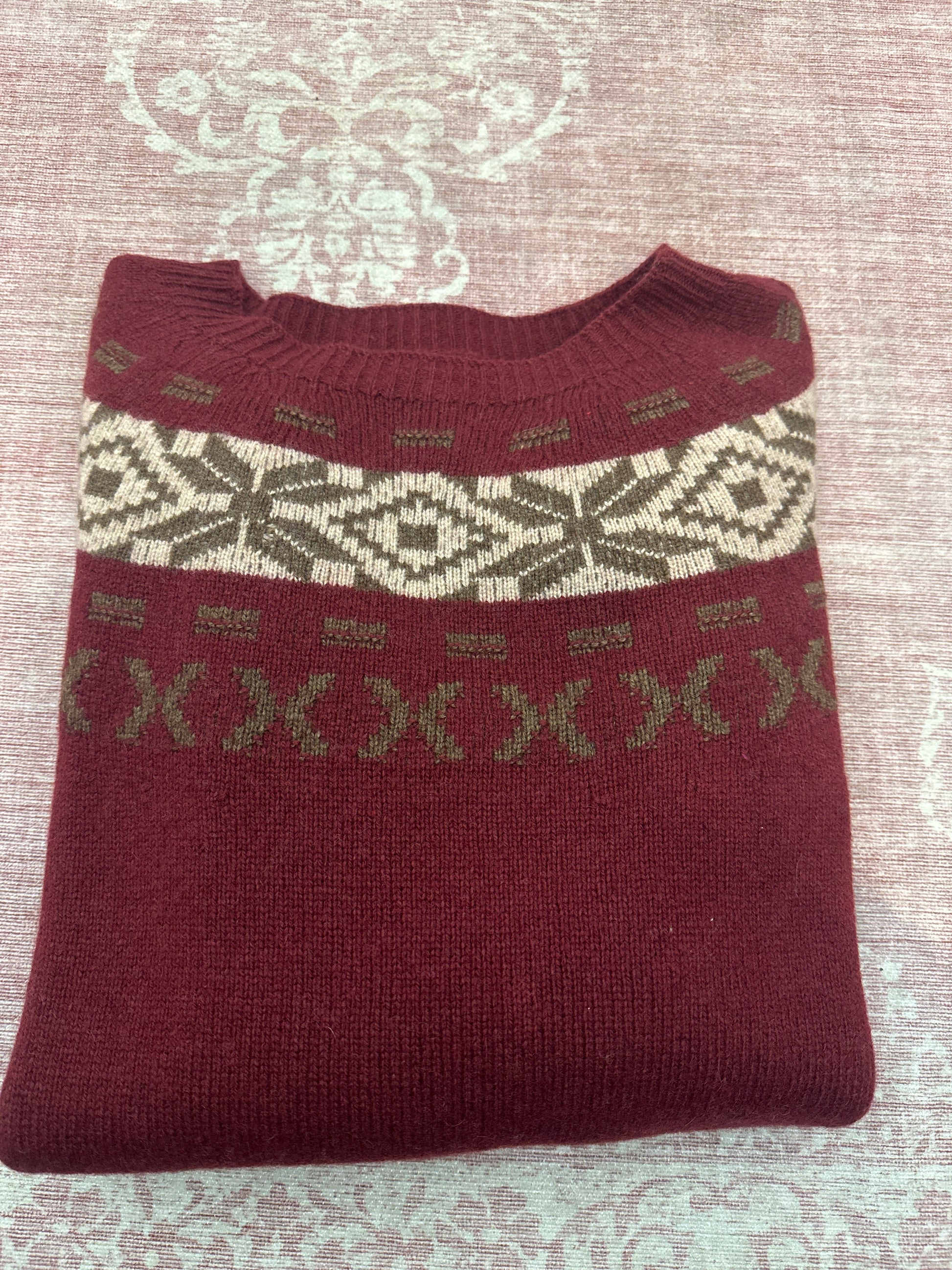 Maglione scollo largo, fantasia geometrica. Vestibilitá morbida. Veste da S a L