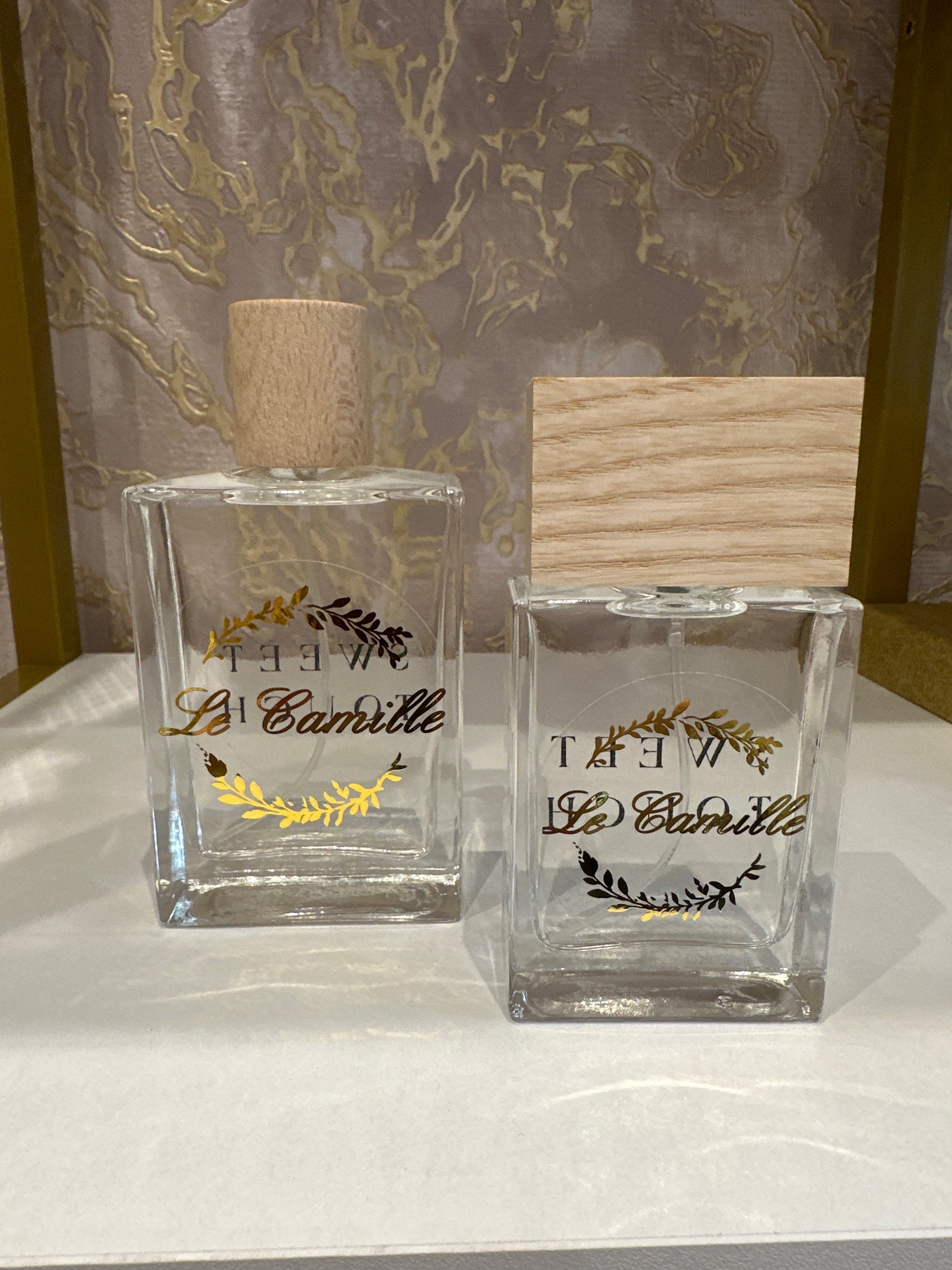 Spray ambiente . Personalizzato e ideato da Le Camille. Disponibile in 3 fragranze diverse tra loro e in 2 formati.